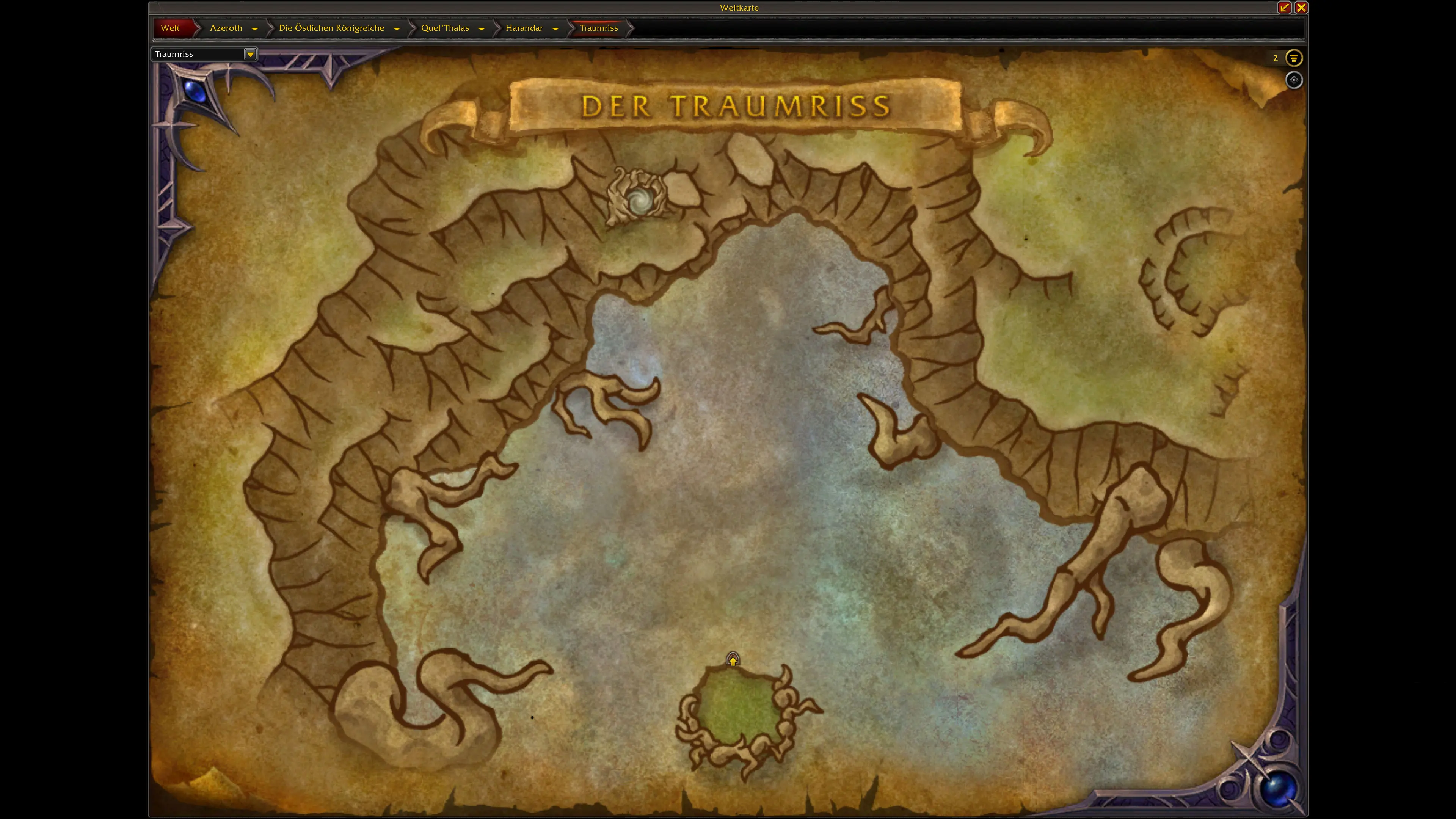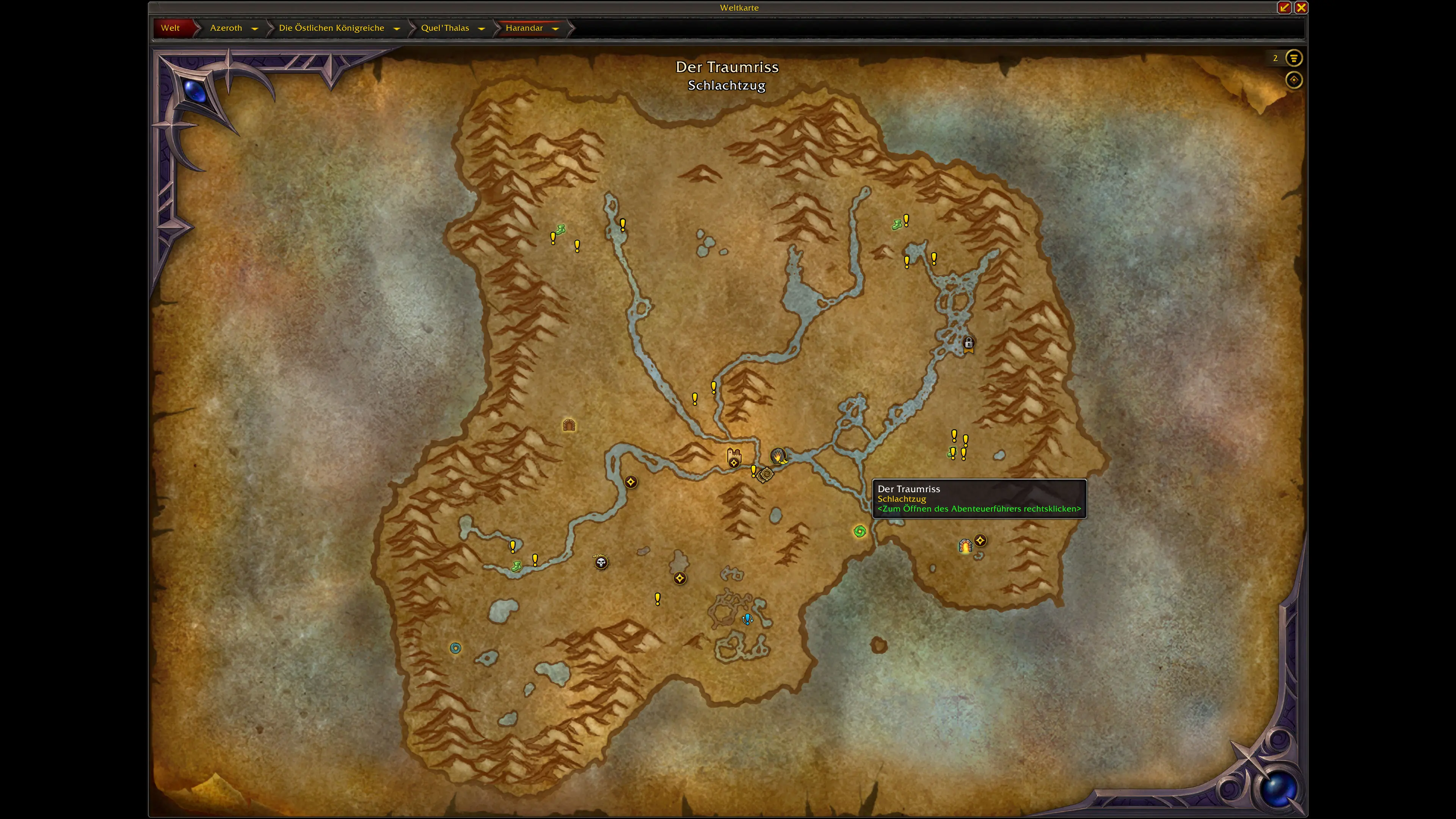 Den Eingang zum Traumriss findest du im Südosten von Harandar. Die genaue Position ist auf der Karte eingezeichnet.