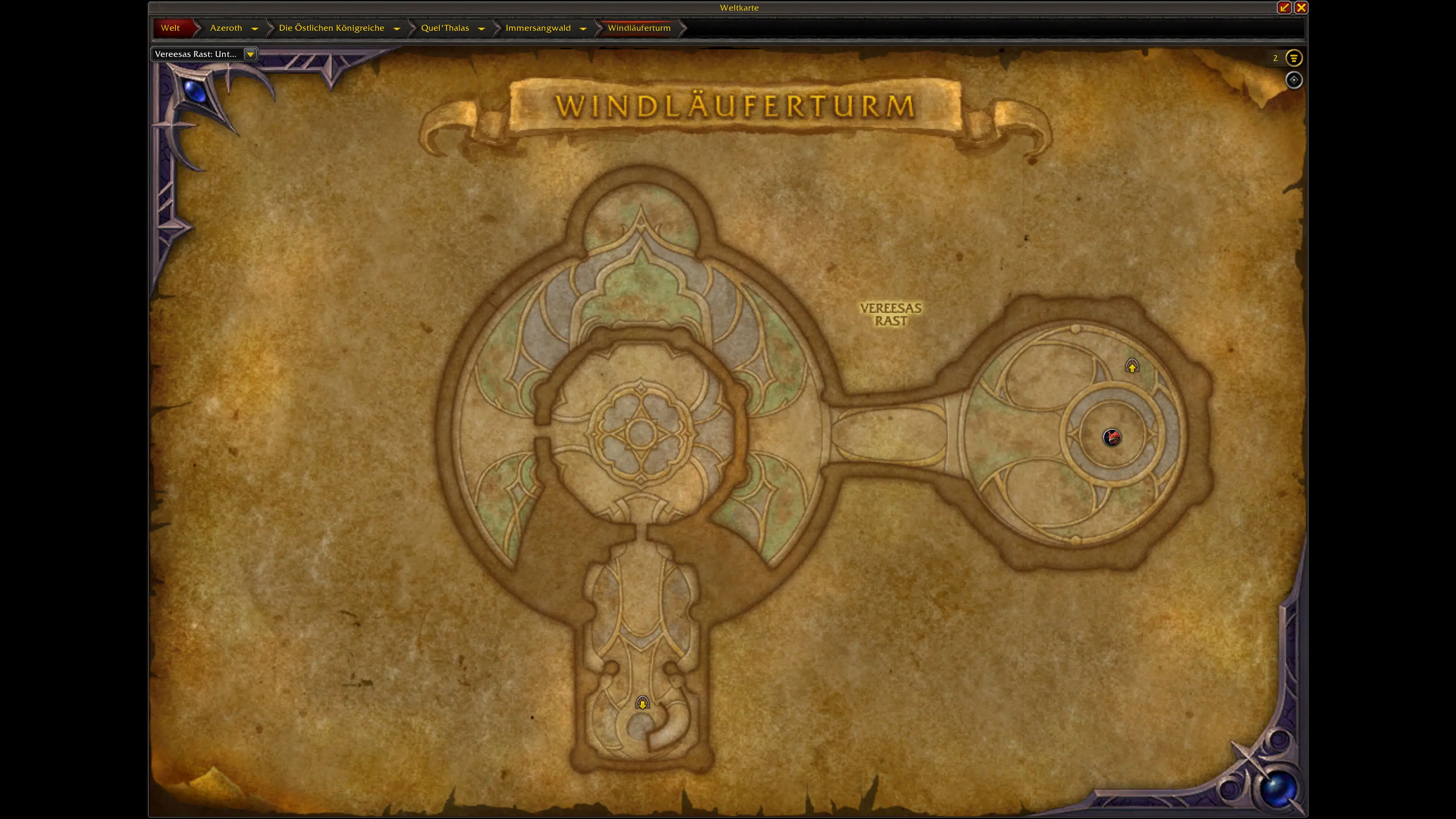 Der Eingang zum Windläuferturm ist Südwesten vom Immersangwald zu finden und ist auf der Karte eingezeichnet.
