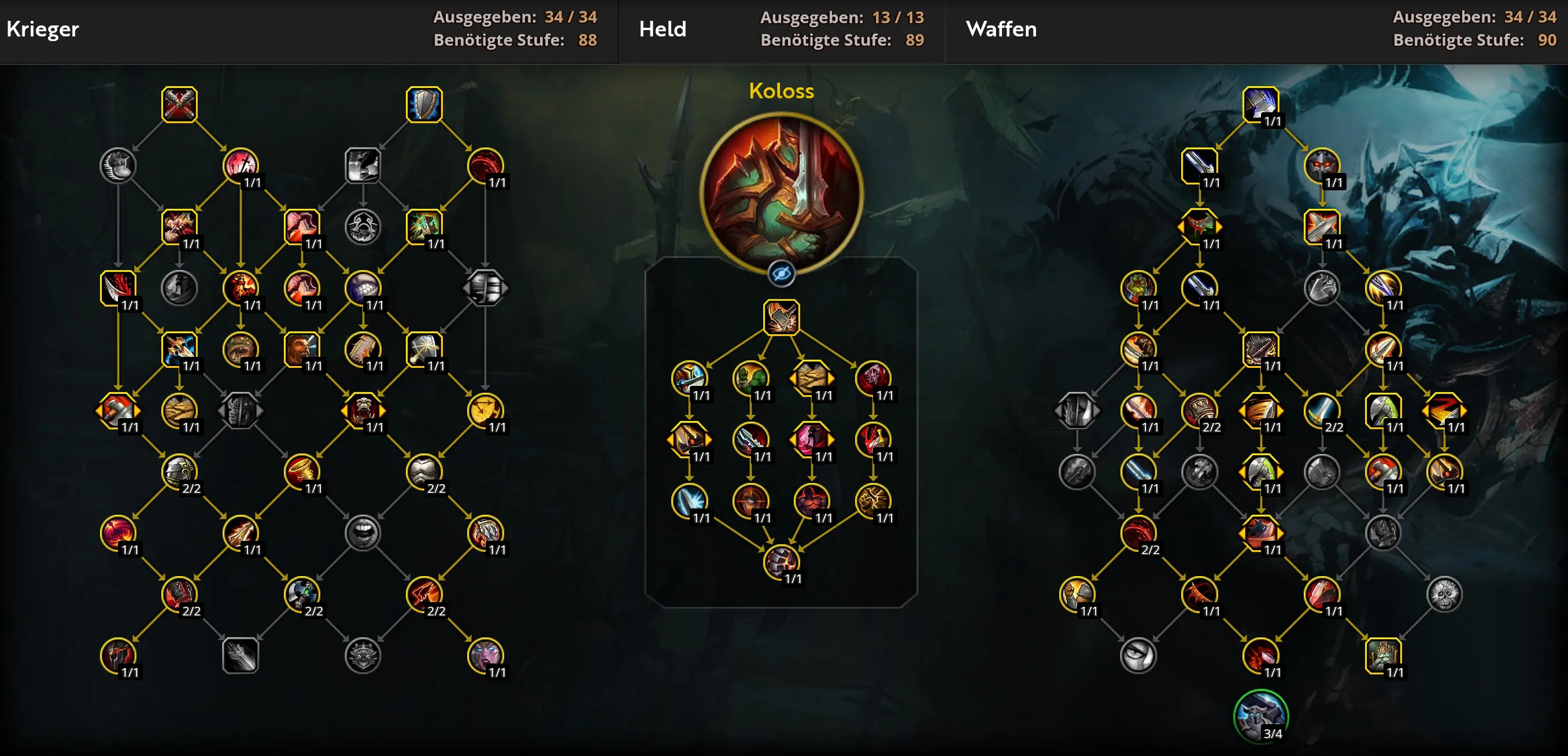 Nachfolgend alle Ehrentalente vom Waffen-Krieger im Überblick.