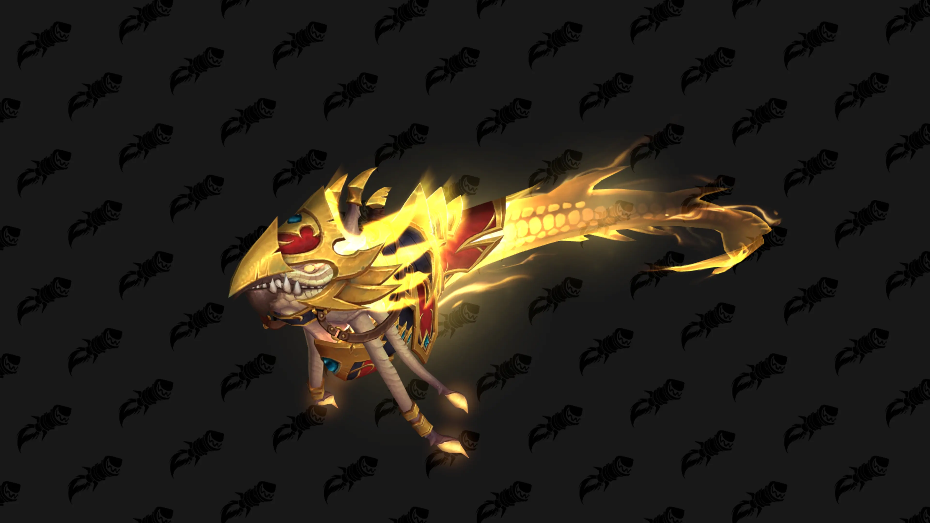 Dieses ziemlich ungestüme Schuppentier ist vom Stamm der Bleichborken entkommen, nachdem seine Rüstung angelegt wurde. Wer es findet, darf es behalten!
