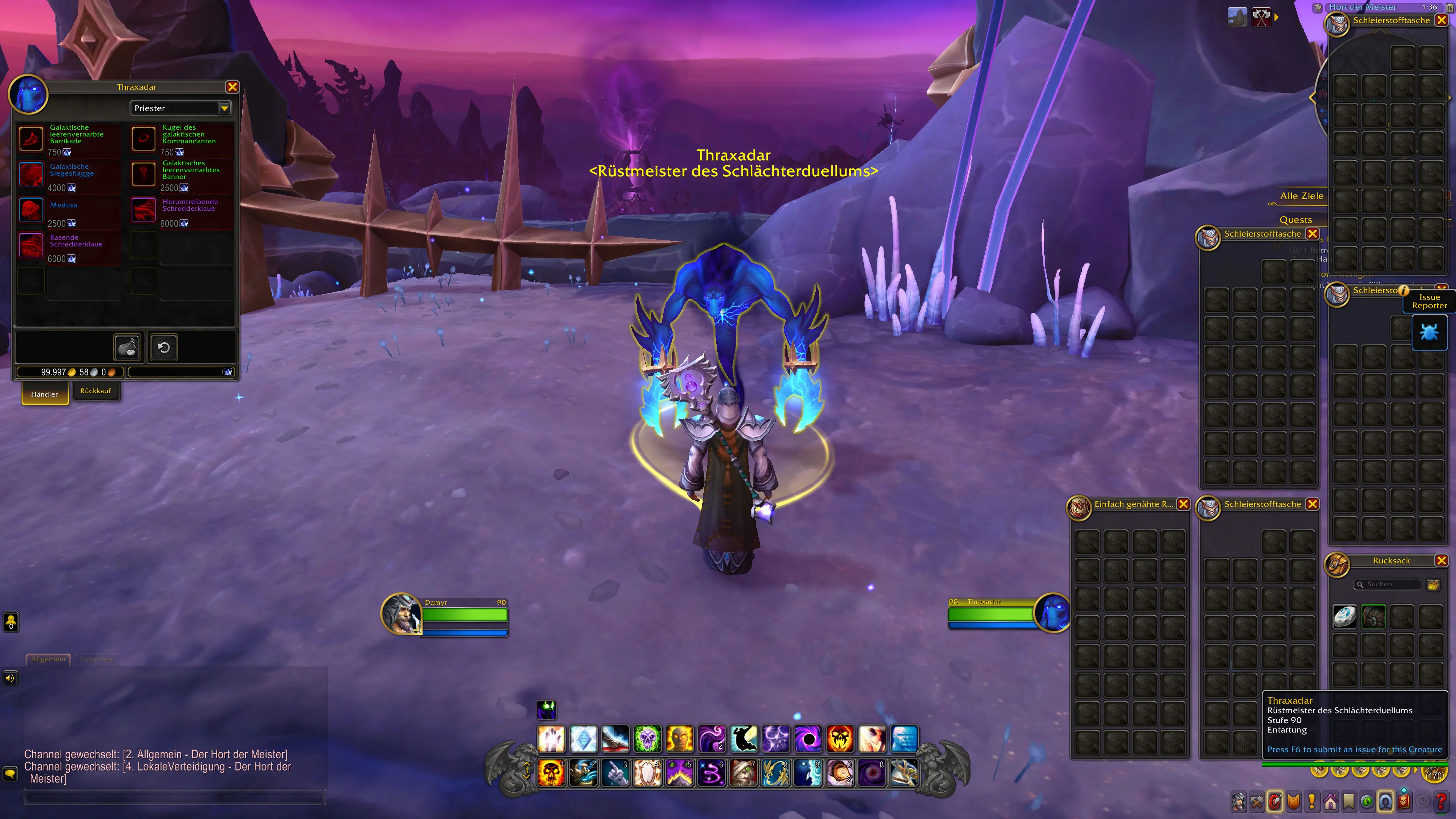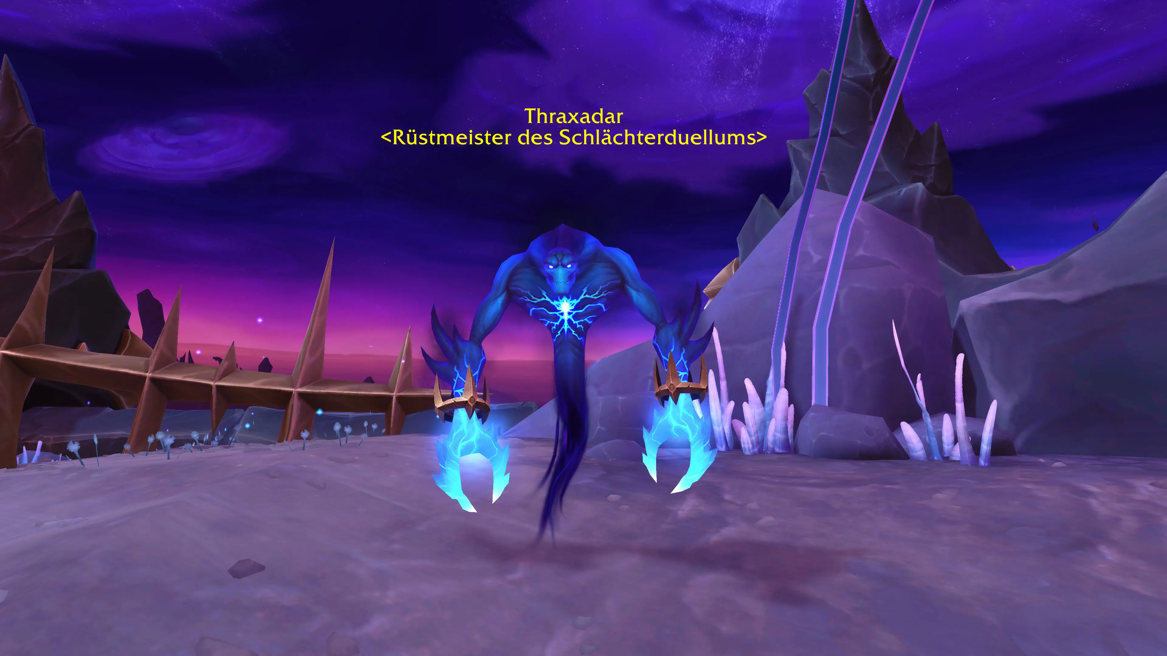Der Rüstmeister Thraxadar bietet Ruhmbelohnungen im Leerensturm zum Kauf an.