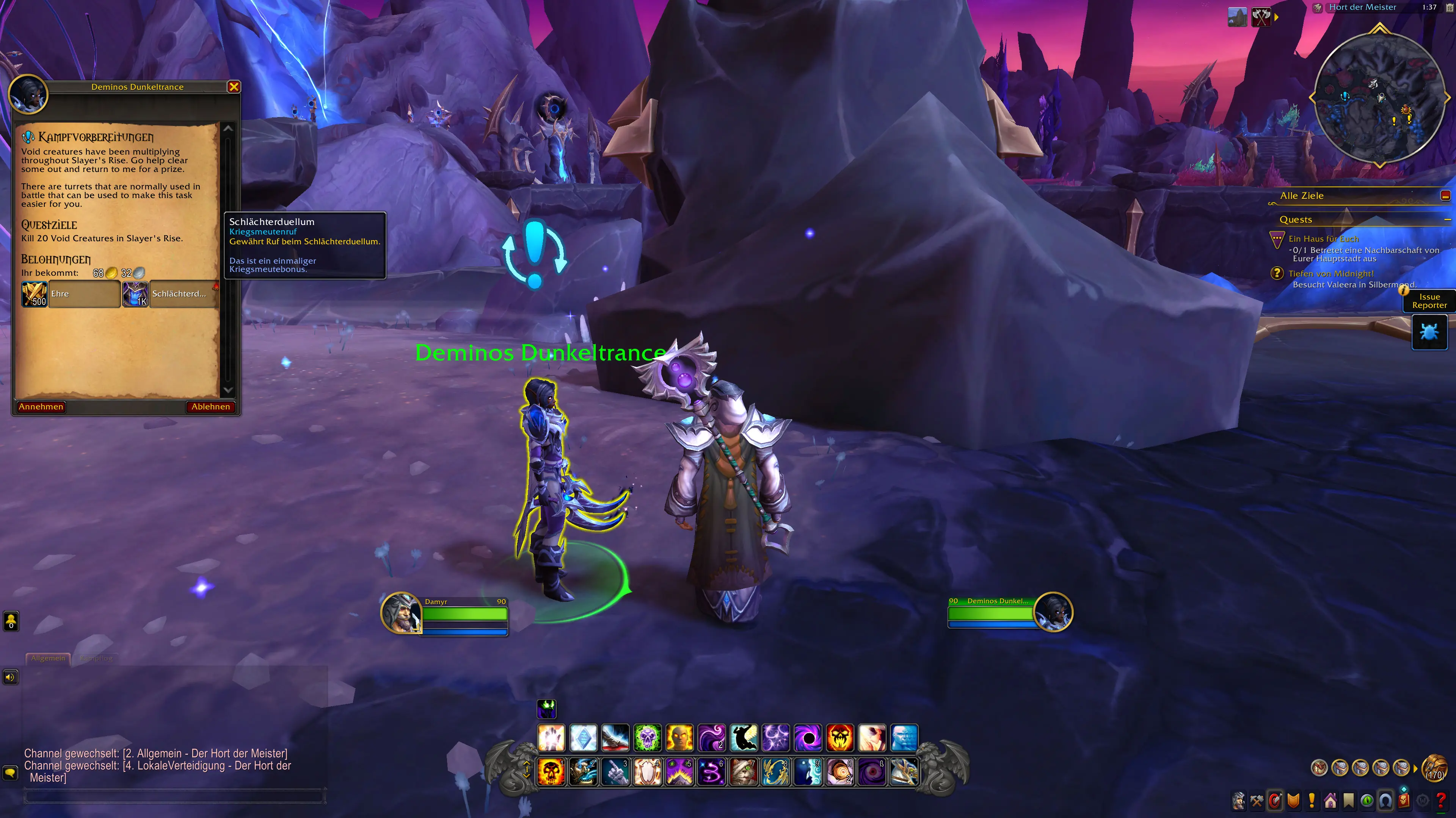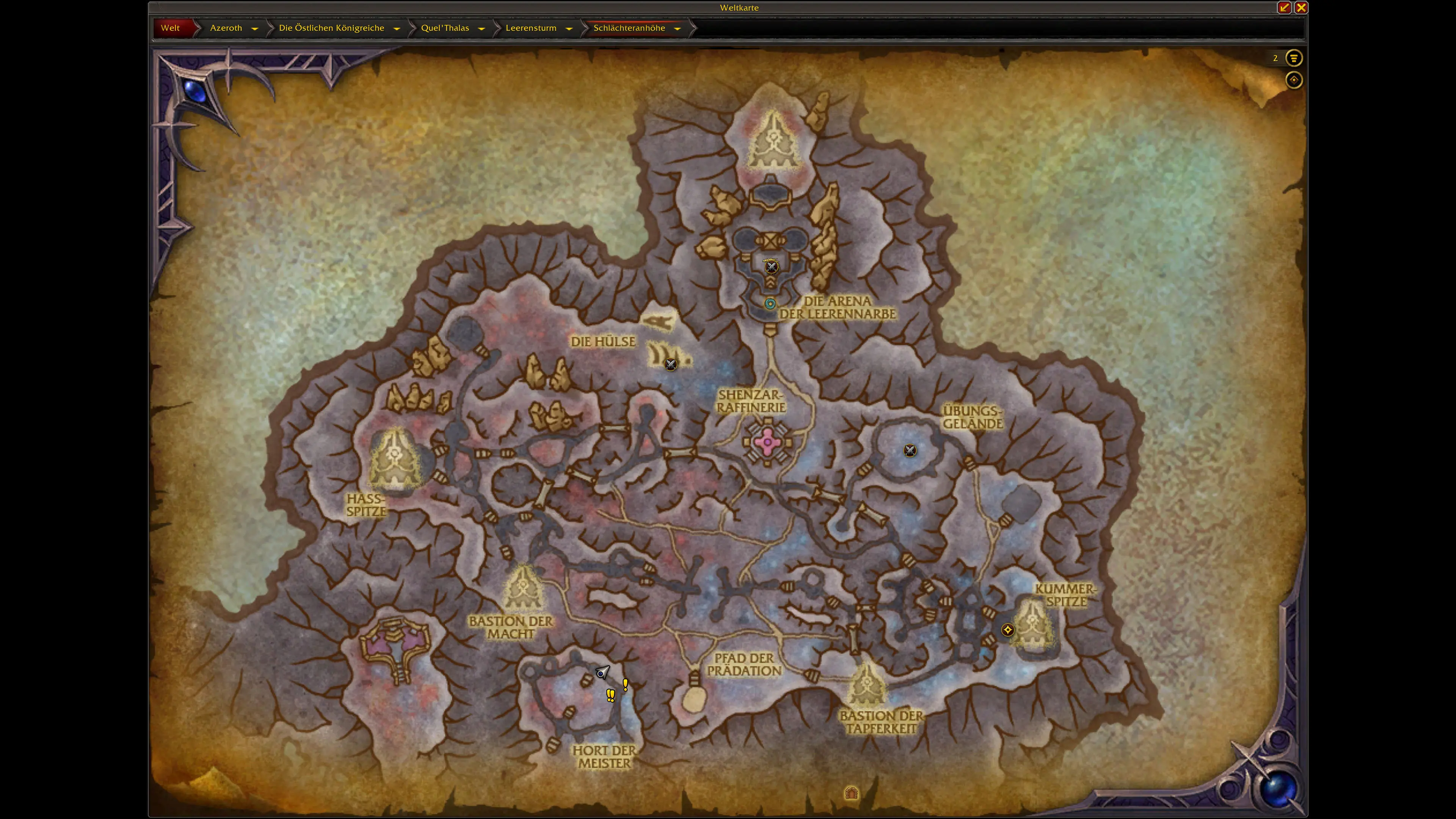 Das Schlächterduellum ist eine neue Fraktion in WoW Midnight, bei der das klassische Ruf-System zum Einsatz kommt. Anhänger dieser Fraktion sind im Leerensturm anzufinden. Ihre Basis befindet sich auf der Schlächteranhöhe etwas nödlicher im Gebiet.