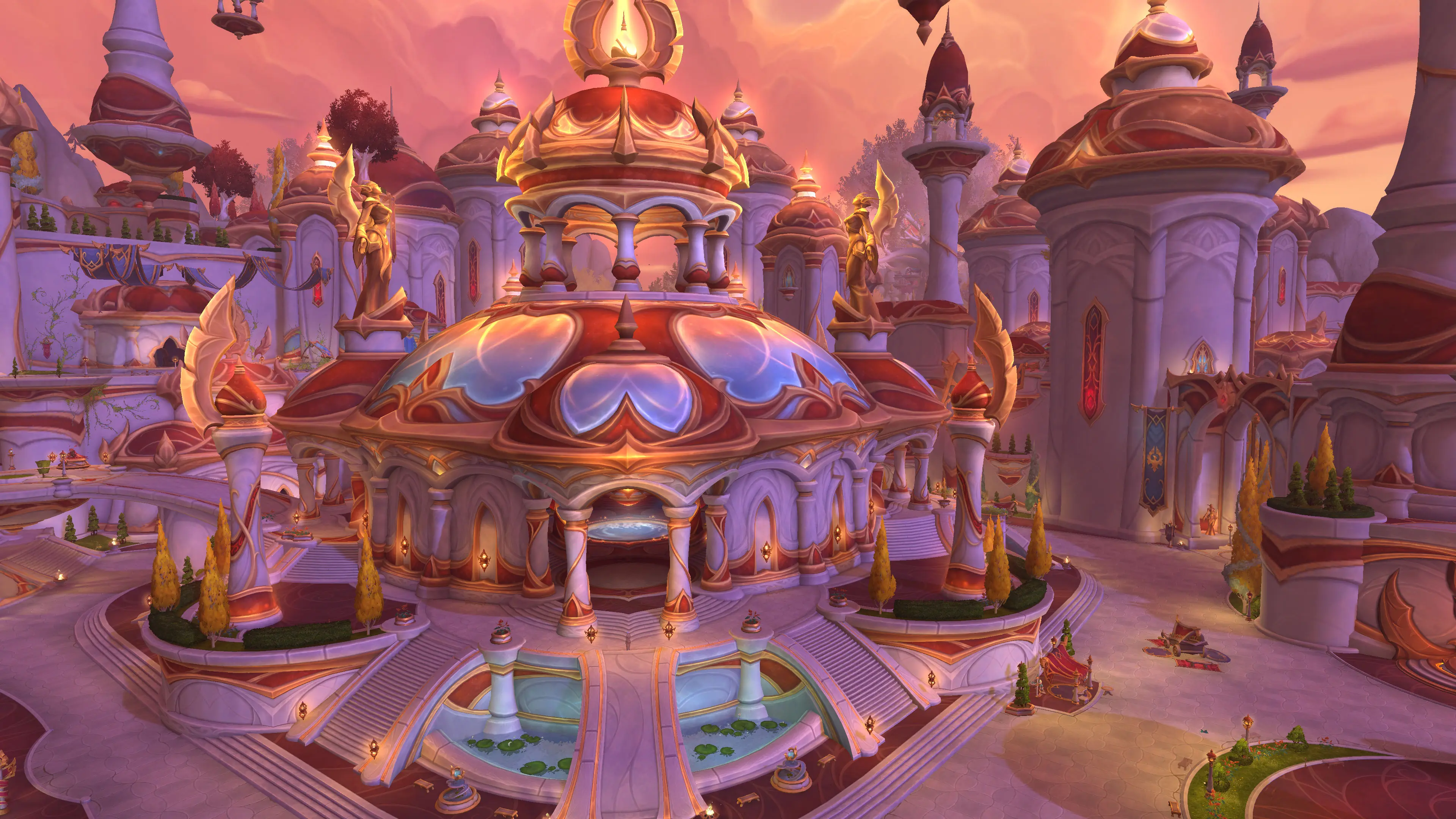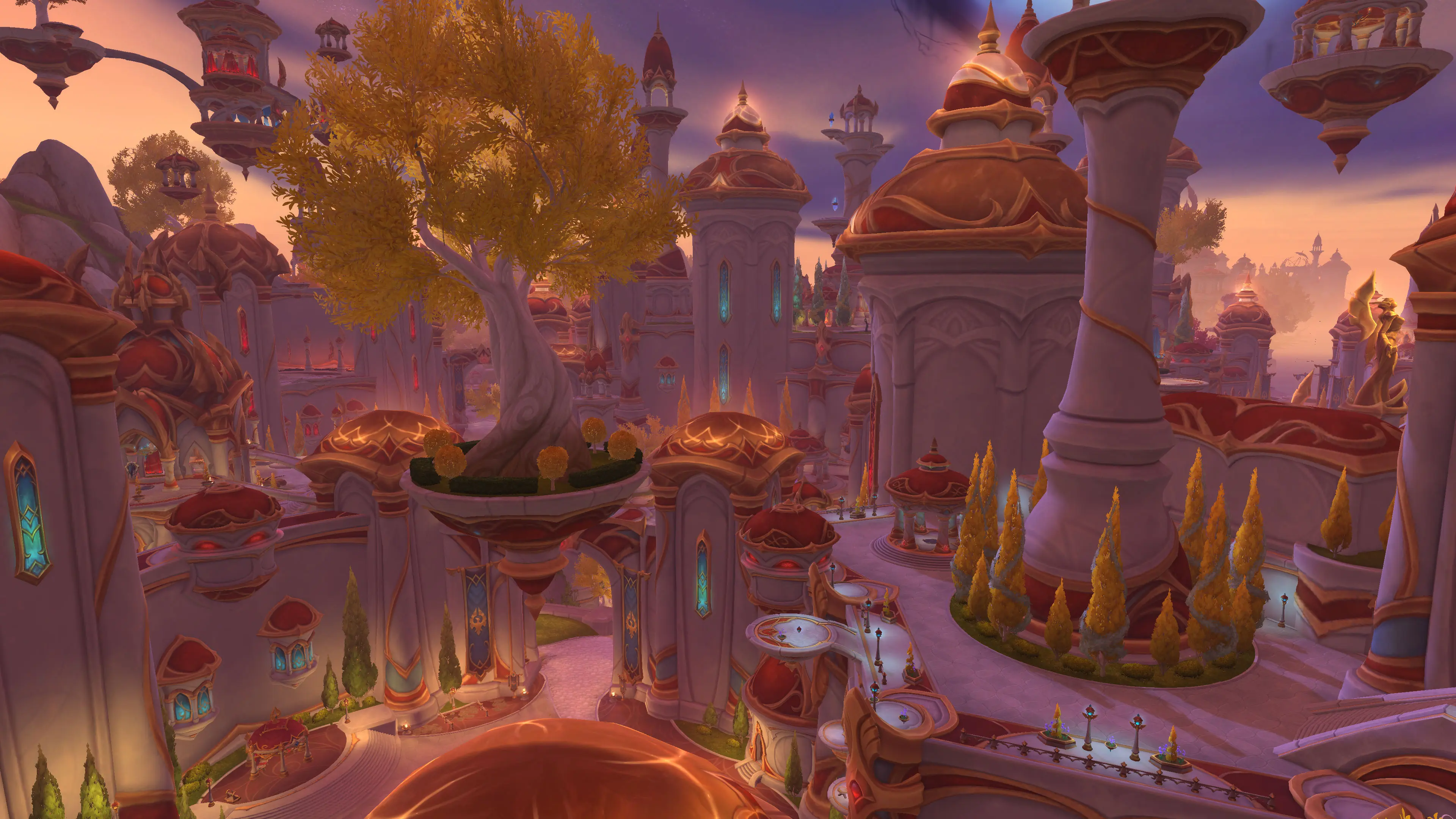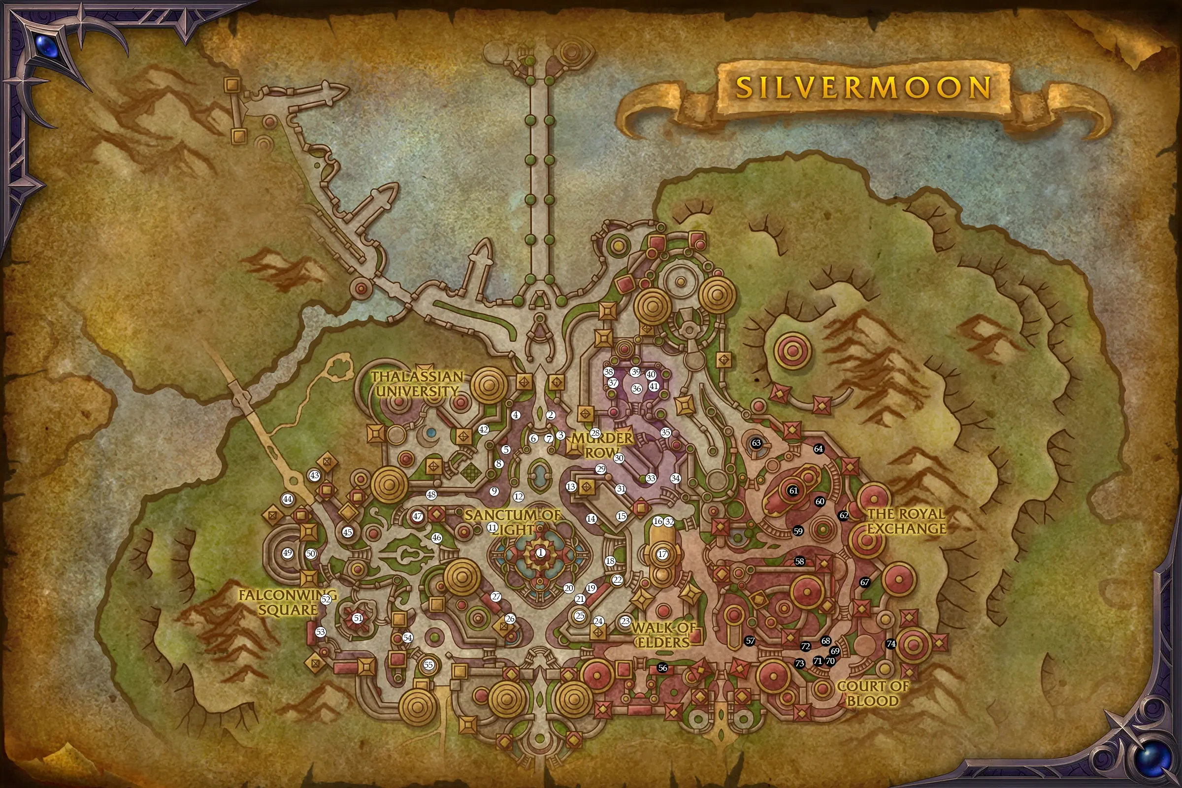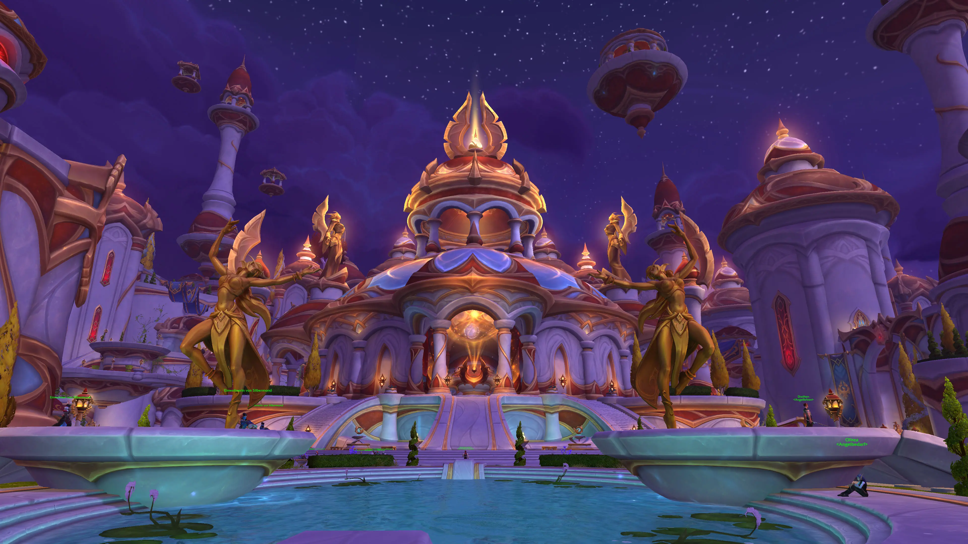 - Fraktionsbereiche: Obwohl Silbermond als neutraler Hub dient, ist etwa ein Drittel der Stadt exklusiv für die Horde reserviert. Die restlichen zwei Drittel sind für beide Fraktionen zugänglich.